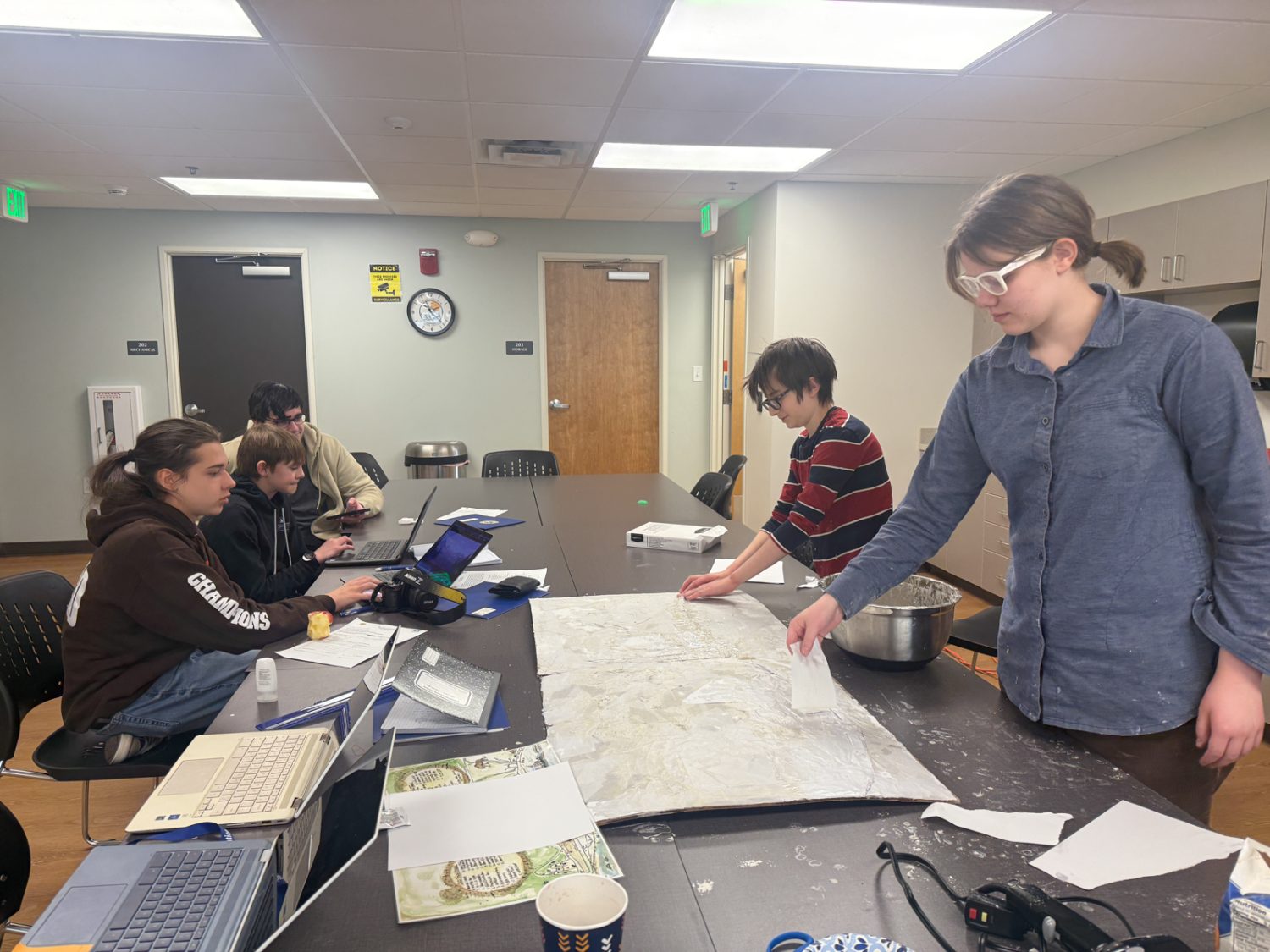 The team combined paper mache for a textured map base with 3D-printed buildings for fast, accurate construction. Along the way, they tackled challenges like printing issues, tight time constraints, and scaling buildings correctly. Skills like grant writing, map layout, and painting were all part of the process.