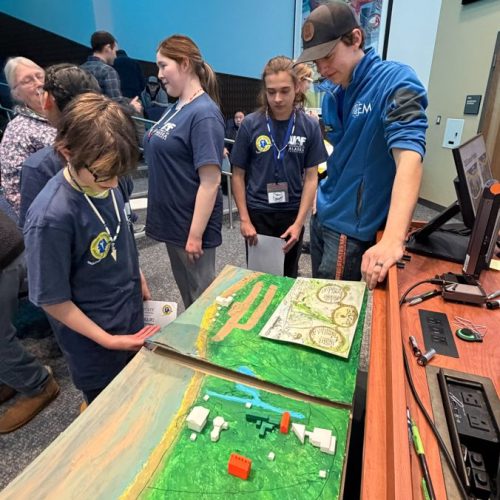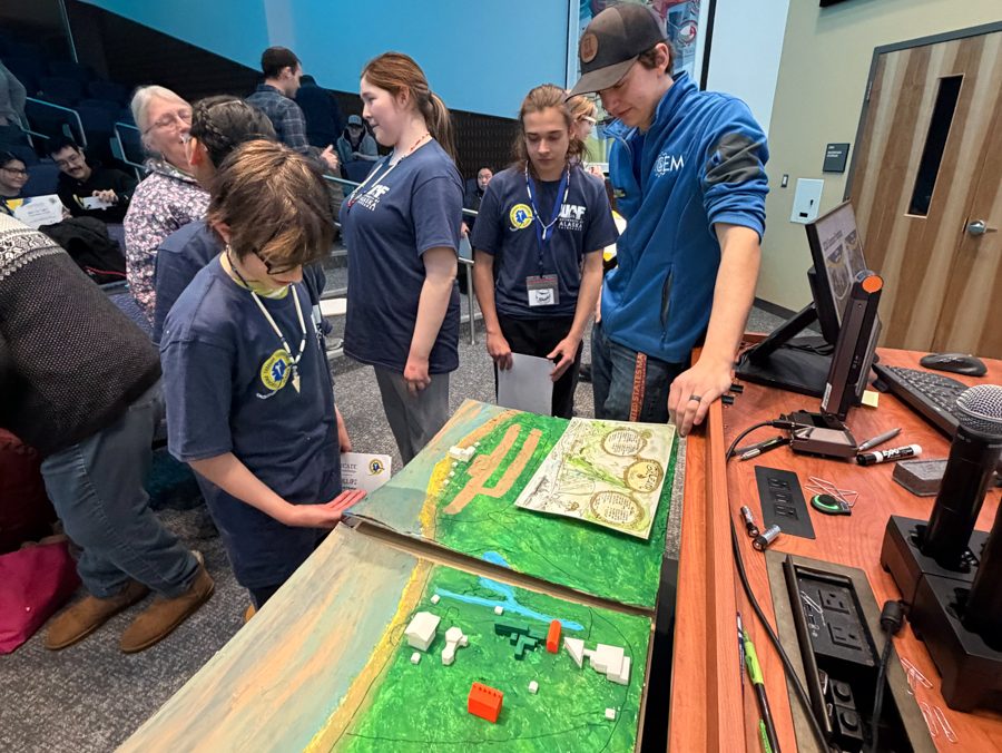 Students from Cordova and Galena took on a hands-on project to visualize how energy flows through the town of Galena. The team—Micah Phillips (Cordova), Colter Scotton (Galena), Max Osborn (Cordova), Amelia Niles (Cordova), and Isla Haisman (Cordova)—created a detailed scale map complete with 3D-printed buildings and plans to add LED lights showing the electrical grid.