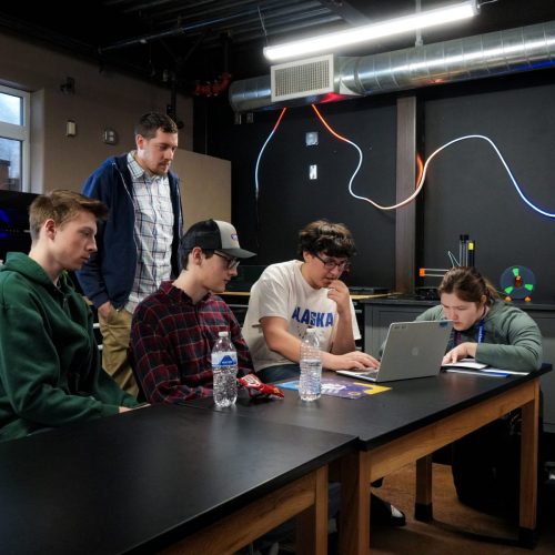 Getting to Fairbanks for the T3 Alaska Engineering a Community Project event was not easy for Minto students last month. A powerful winter storm swept through the region, bringing heavy drifting snow and subzero temperatures. Flights were canceled, and determined community members attempted to drive out early Thursday morning. But deep snow drifts made the roads impassable, forcing them to turn back and return home.