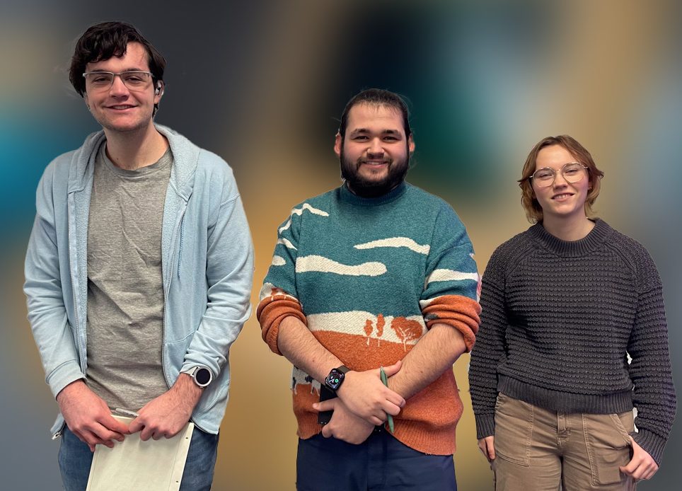 The Alaska Center for Energy and Power (ACEP) enlisted a group of T3 Alaska alumni to develop and submit URSA grant proposals. Three students (L-R)—Adrian Burke, a Computer Engineering major; Petie Deveer, a Computer Science major; and Hailey Hodgins, a Mathematics major — called the “CyberPod” successfully secured two grants. Their project focuses on designing a low-cost, high-performance, and reliable data transmission system tailored for remote locations in Alaska.