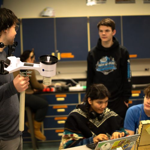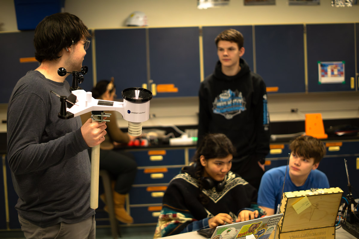 As part of their ongoing development, the CyberPod traveled to North Pole High School on February 6 to host a workshop, testing their toolkit and guides with students. Recently, North Pole students earned their Raspberry Pi programming badges, making them well-prepared to engage with the new technology. The session provided an opportunity for hands-on learning with the sensor technology and data transmission methods the team has developed for remote atmospheric monitoring.